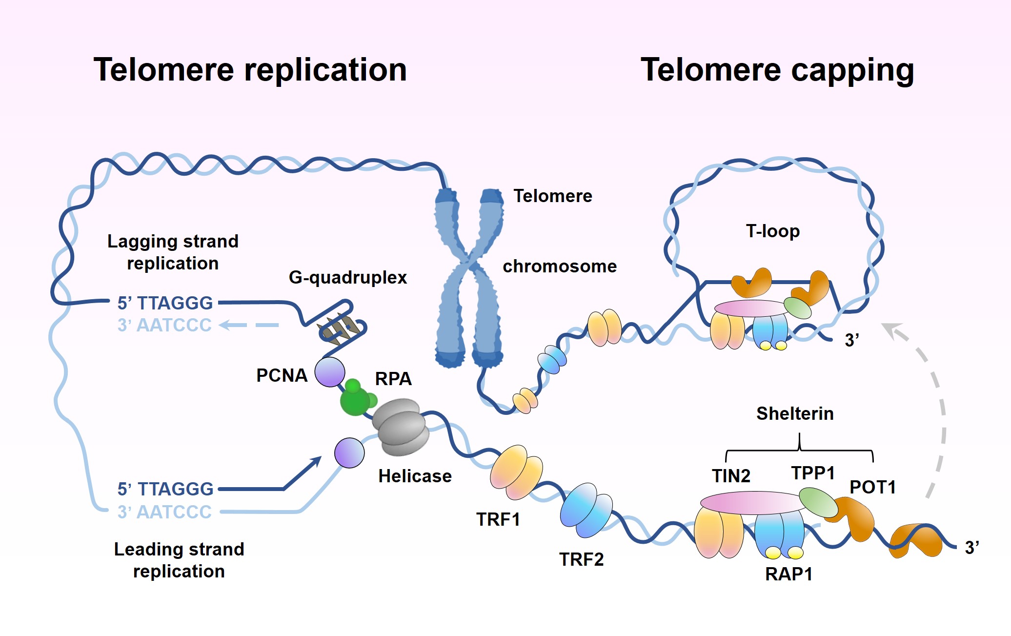 • DNA replication and telomere maintenance Telomere maintenance is a complex interplay between standard DNA replication and the specialized activity of telomerase. We employ single-molecule techniques to reveal how telomeres are replicated and protected and elucidate the dynamic molecular mechanisms of the cooperation and coordination of key proteins involved.